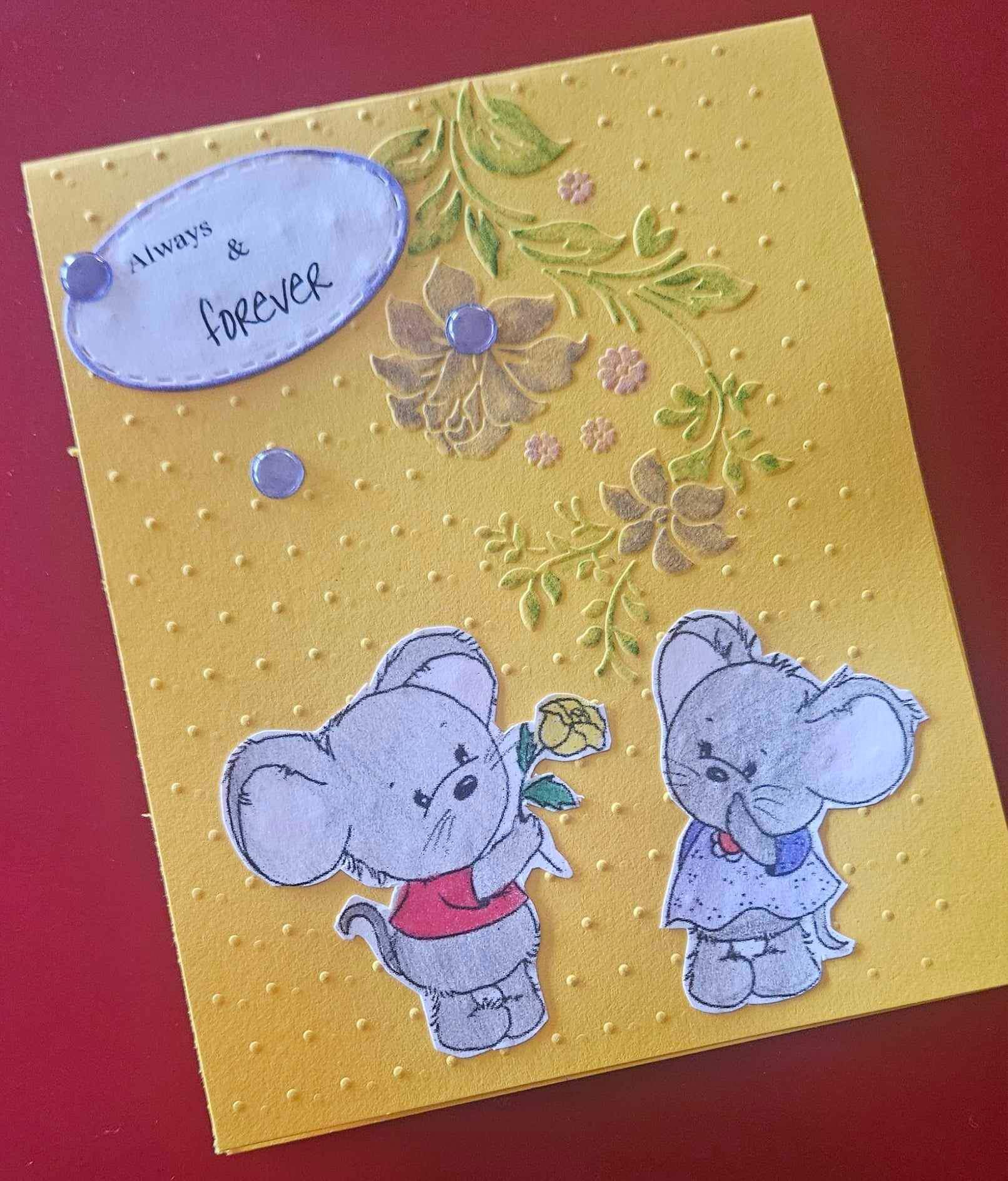 Oh so cute!! I love your use of the embossing folder to give the background some interest. The mice are super cute and adorable! Love it! Thank you for submitting your card to the Beautiful Blossoms Design Challenge! We look forward to you joining us on the next one! ~ Amanda :)